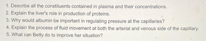 Describe all the constituents contained in plasma and their concentrations. Betty was an active 24. What can Betty do to improve her situation.